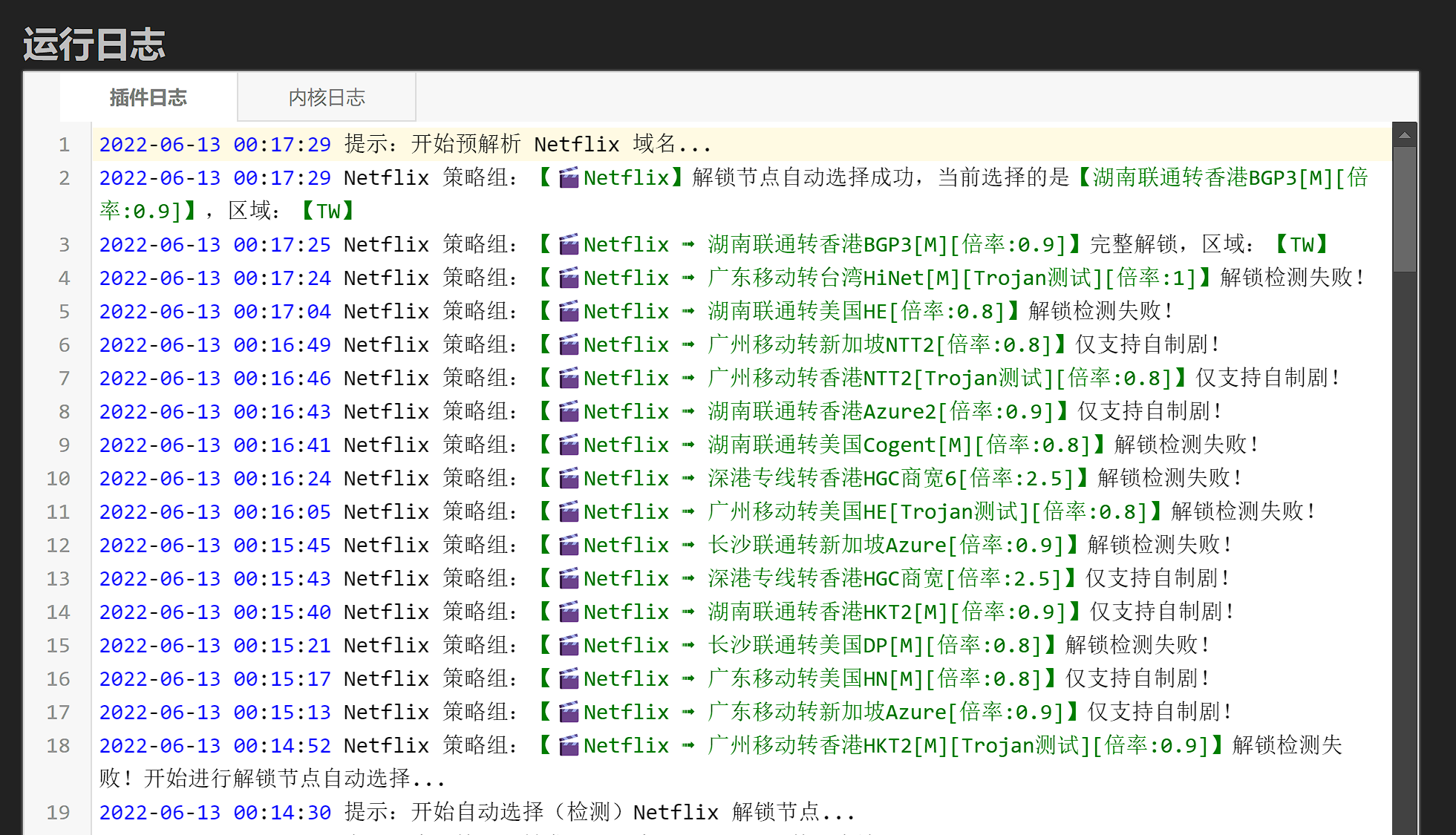 到达检测时间时,触发流媒体自动检测,Netflix策略组自动选择解锁节点