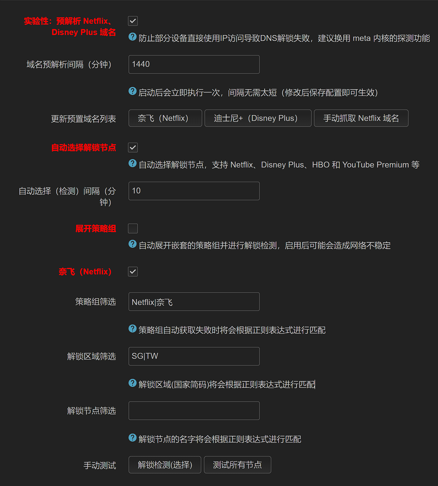 以解锁Netflix为例,设置每10分钟Netflix策略组里选择解锁新加坡或台湾Netflix的节点