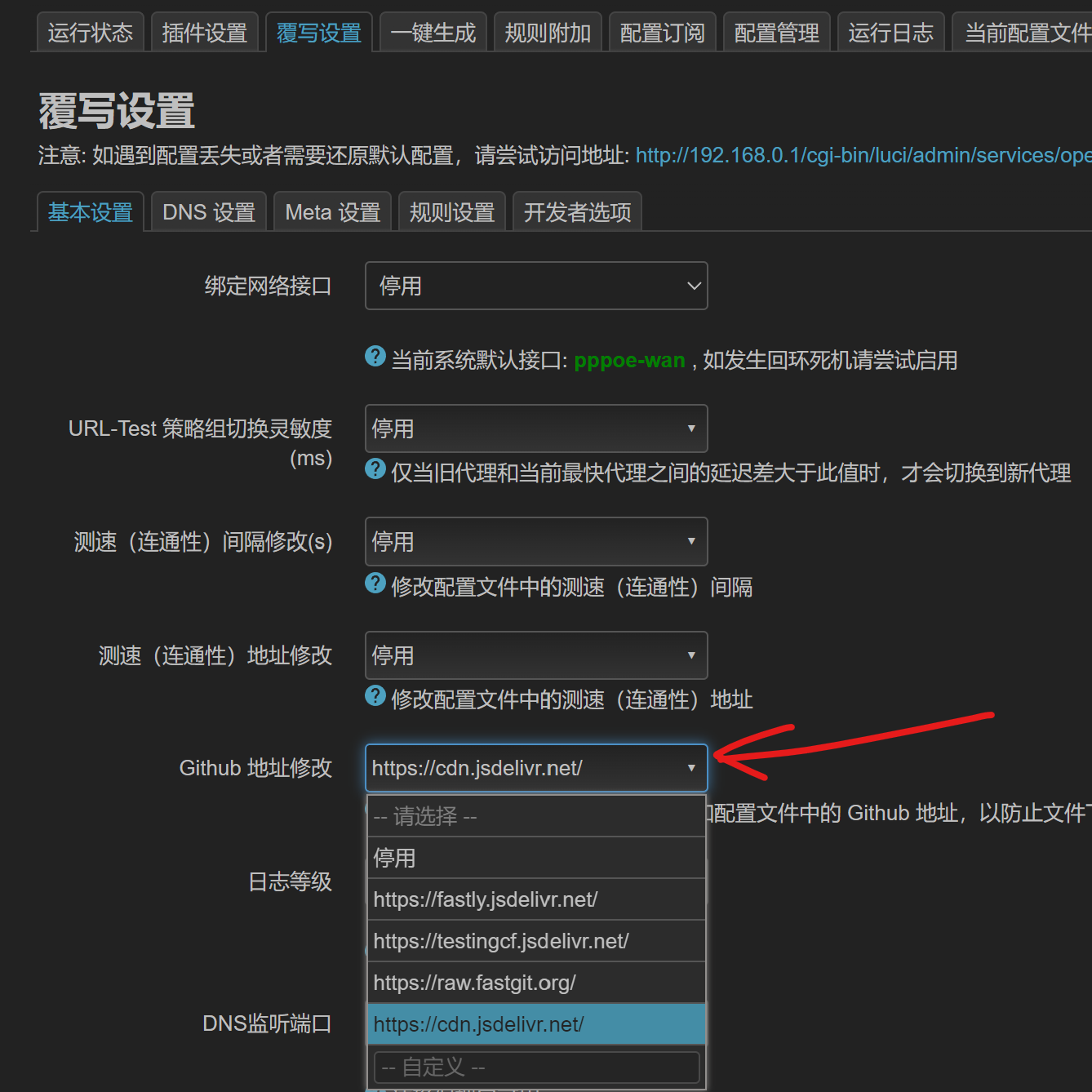 如果在未翻墙情况下更新困难,进入覆写设置-基本设置,Github地址修改并保存