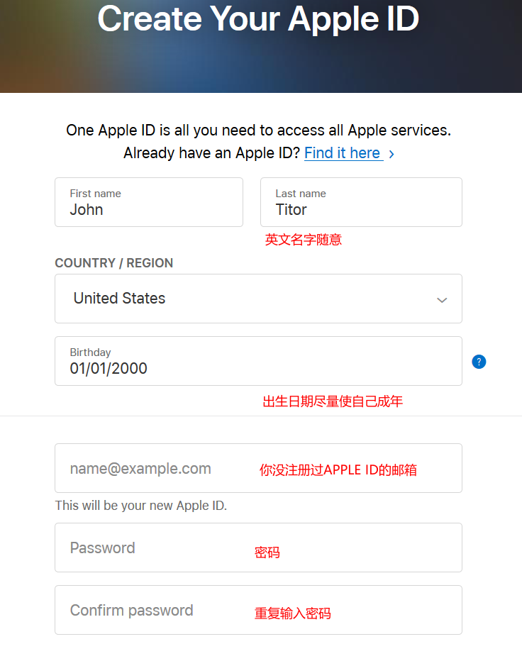 1、注册非中国大陆区APPLE ID(已经拥有非中国大陆区APPLE ID可跳过此步骤)