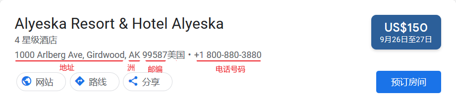 如果不知道怎么填,谷歌搜索Alaska Hotel