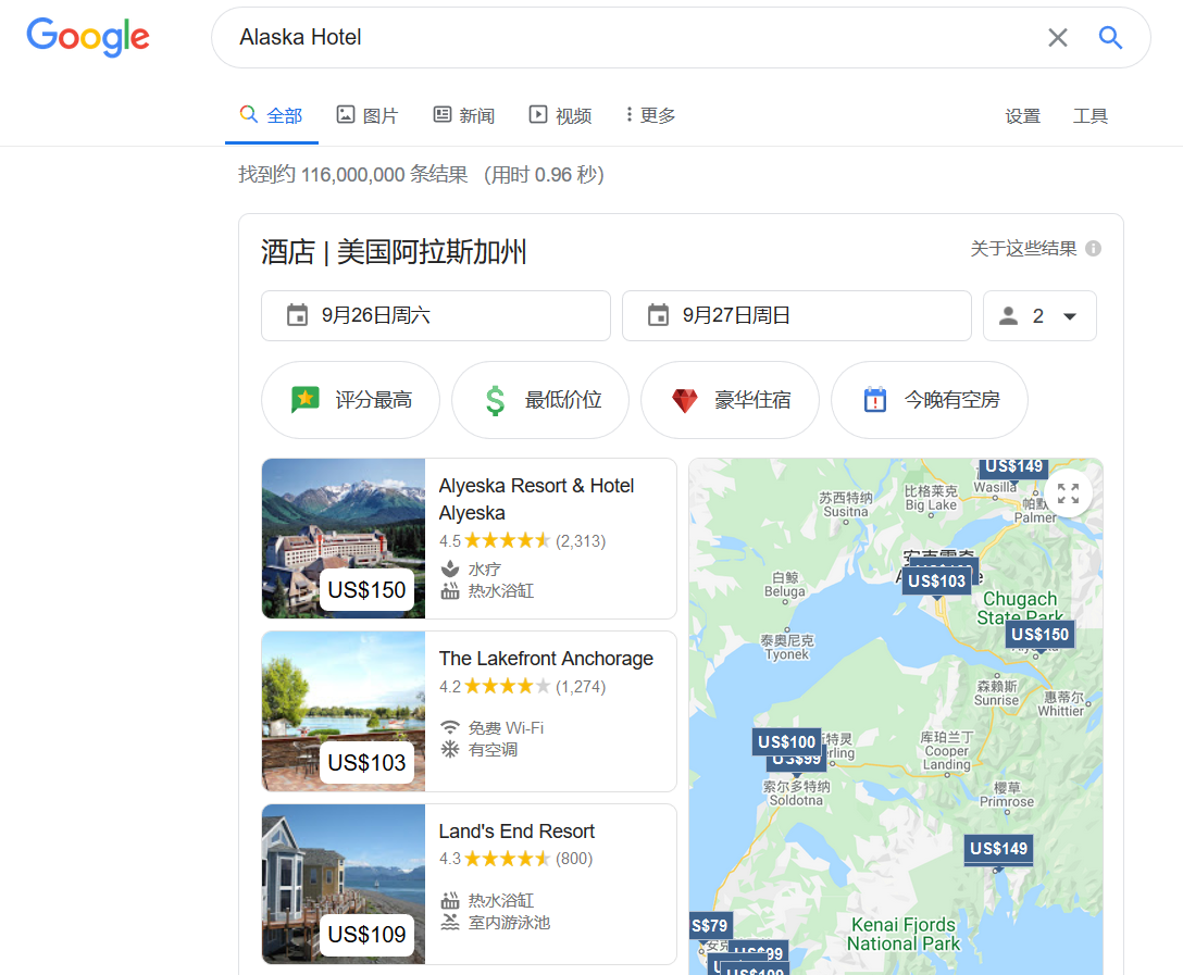 点击随便一个酒店,比如Alyeska Resort & Hotel Alyeska